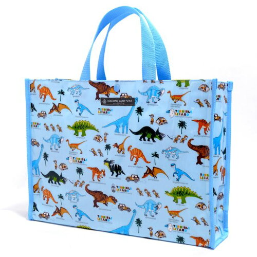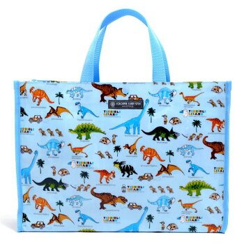 商品名プールバッグ ラミネートバッグ(スクエアタイプ) 発見!探検!恐竜大陸(ライトブルー)商品の特長1.水や汚れに強く丈夫なマチ付きプールバッグ生地の表面に水を通さない防水生地、内側にはナイロンの撥水生地を使用。