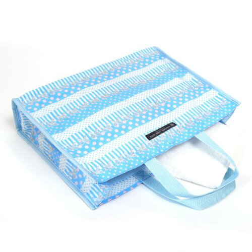 商品名プールバッグ ラミネートバッグ(スクエアタイプ) ポルカドットとレースリボンに魅せられて(ライトブルー)商品の特長1.水や汚れに強く丈夫なマチ付きプールバッグ生地の表面に水を通さない防水生地、内側にはナイロンの撥水生地を使用。