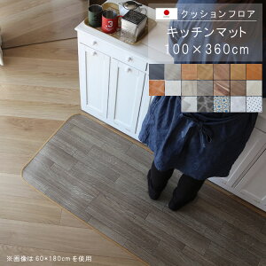 キッチンマット 100×360cm クッションフロア 撥水 床にピタッ!滑り止め 抗菌 防カビ 防炎 防汚・傷防止におすすめ ビニールクッションで表面さらさら お手入れが簡単に!国産 日本製【QSM-140】【P1】【JG】